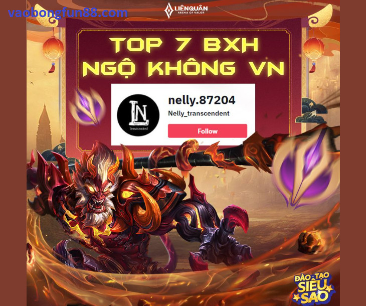 ???? Thêm một champ Ngộ Không nữa gia nhập chương trình và đó chính là top 7 BXH VN hiện tại Nelly tại 12bet!